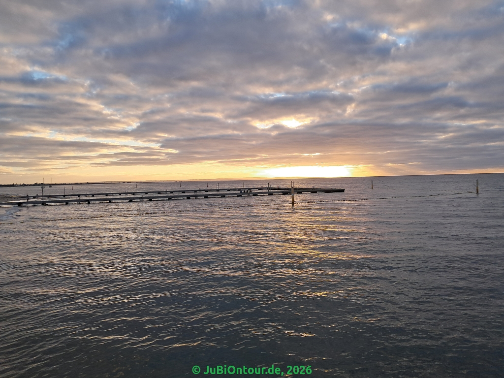 Und mit diesem Sonnenuntergang in Busselton sagen wir für heute Tschüß und Bye